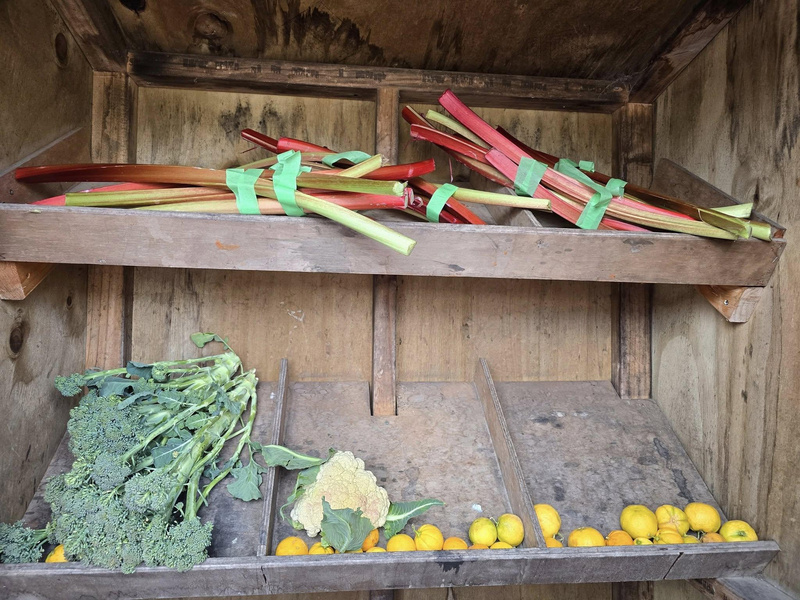 There's some beautiful rhubarb and other produce on the stall at 14 ludstone rd. Help yourself! Ive just picked the cauliflower from the Community garden...its not big but its fresh!